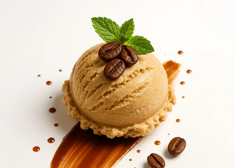 Maturation lente de la crème glacée, aux notes douces et envoûtantes de café fraîchement moulu