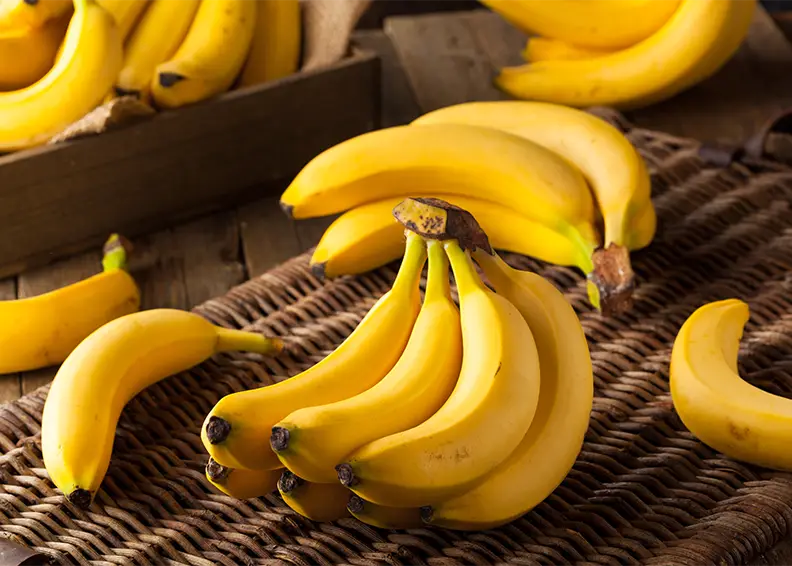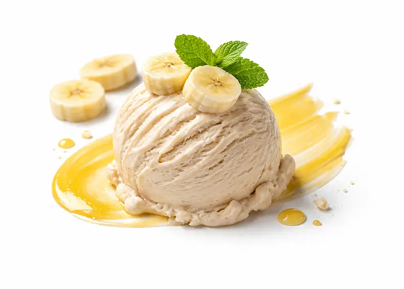Banane (1) 60%, sucre, eau, fibres de maïs, jus de citron, protéine de pomme de terre, stabilisants (farine de graines de caroube, pectine), antioxydant (acide ascorbique).